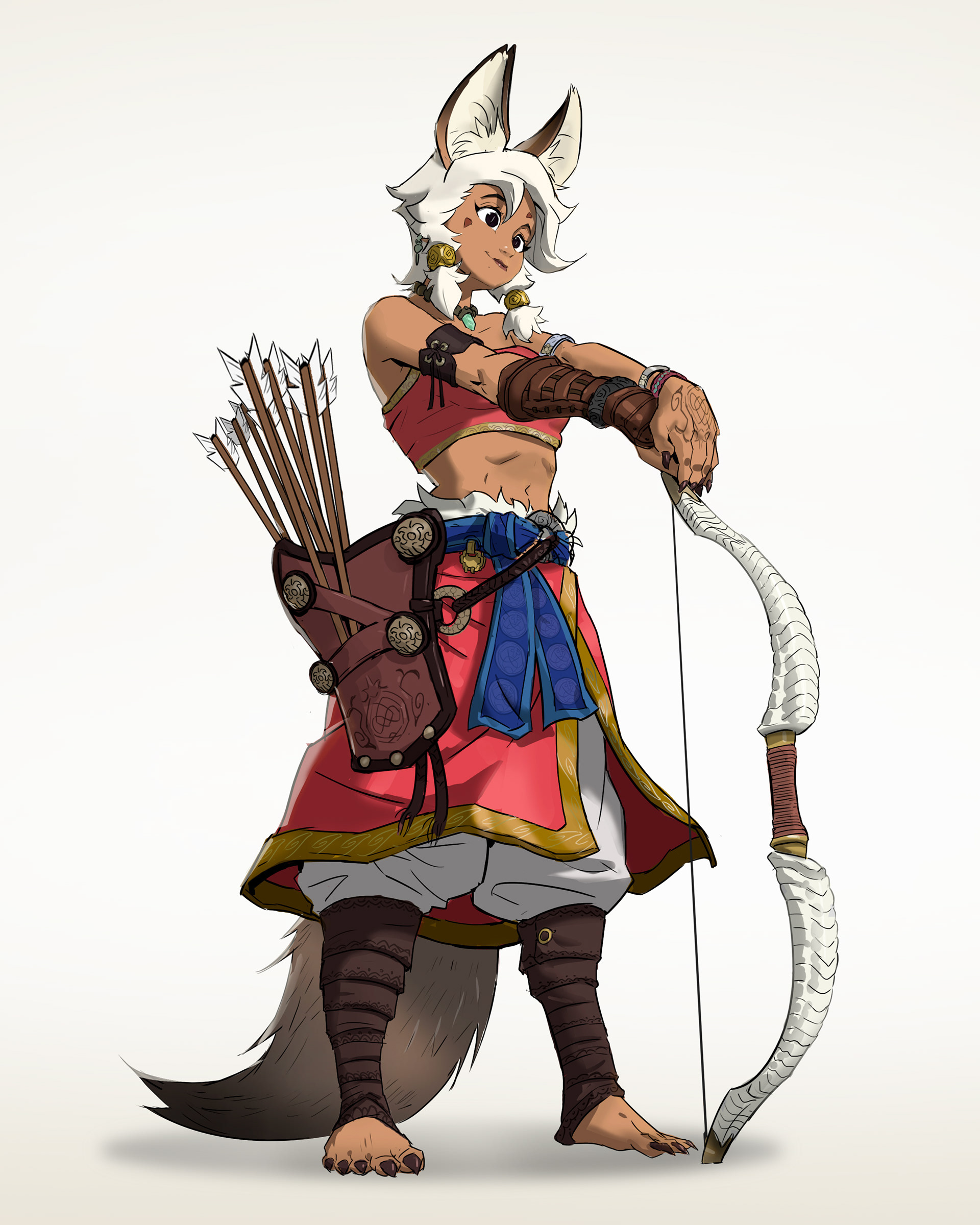 A fan art take / redesign of @natsuchenn character design, Bortei. A fearless Aardwolf Mongolian warrior princess, complete with a bow made from ram-like creature horns and an independent spirit.