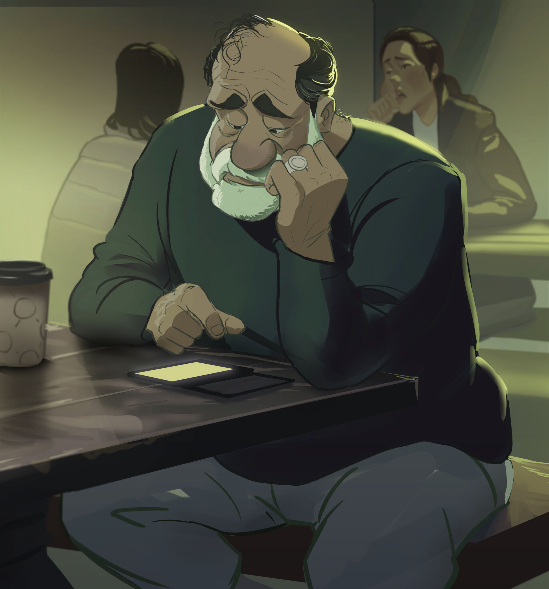 I am a frequent cafe visitor, and sometimes I get my work day started by sketching some visitors.