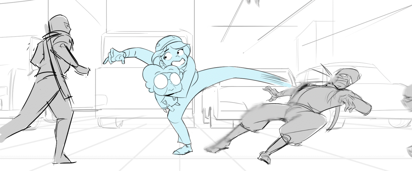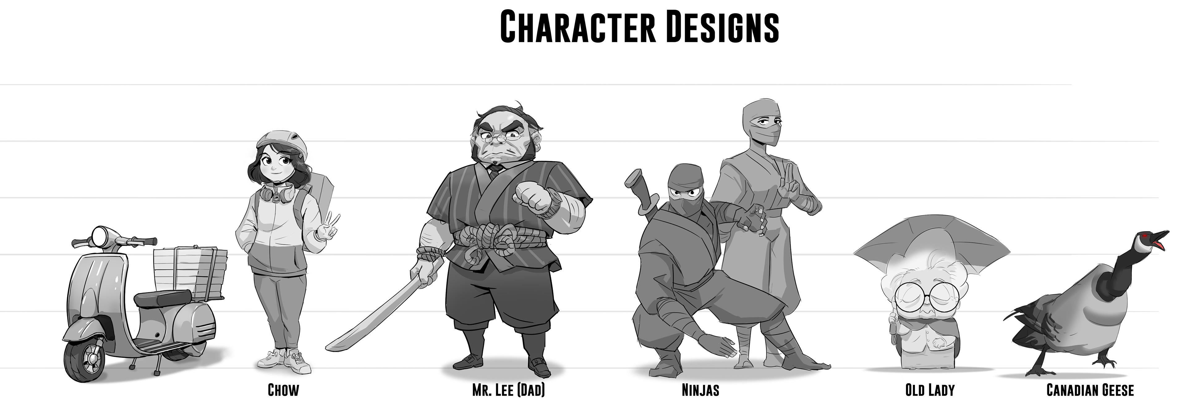 Chow Time is a story project that follows a girl trying to deliver pizza, only to be ambushed by ninjas. Turns out, she too, is a ninja, and they want her to come back to the clan.